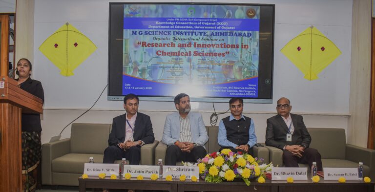 The Department of Chemistry, M.G. Science Institute, Ahmedabad, successfully organized a P. M. Usha–sponsored two-day International Seminar on “Research and Innovation in Chemical Sciences” on 12th and 13th January 2026 at the M.G. Science Institute.