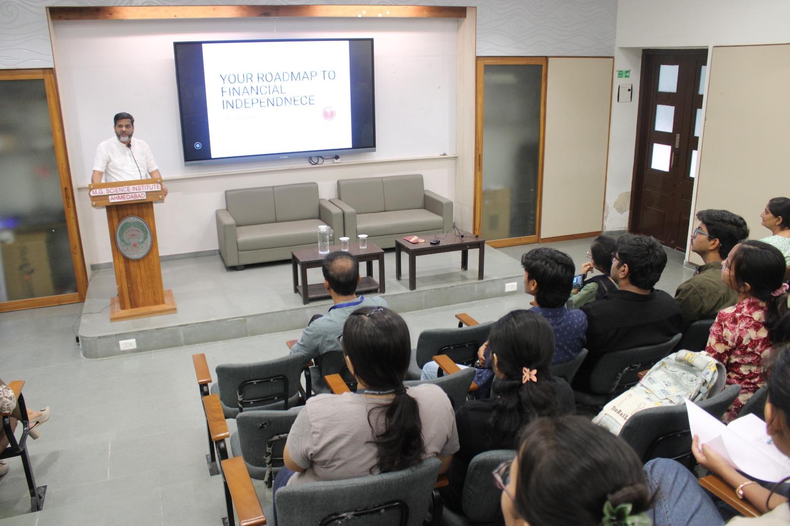 The IQAC Cell of M. G. Science Institute (Autonomous), Ahmedabad, organized an interactive session titled “Smart Money Moves” on 10 March 2026 at Theatre 5. The session aimed to introduce students to the fundamentals of financial planning and responsible money management, emphasizing the importance of developing financial awareness at an early stage.