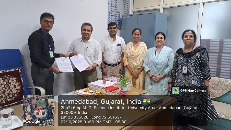 The MOU was signed on 4th October 2025 between Dr. Jatin Parikh (Officiating Principal, MGSI) and Dr. Vishal Nanavaty (SBRI). It marks a step toward enhancing research capabilities, scientific understanding, and student training.