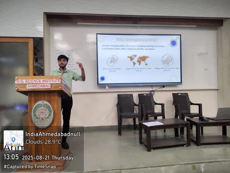 The MG Science Institute celebrated World Entrepreneurs’ Day on August 21, 2025. The event was organized with a dual objective: to serve as an “Orientation program” for the Innovation Club new members and to commemorate the “World Entrepreneurs’ Day” dedicated to entrepreneurs and their contributions to society.
