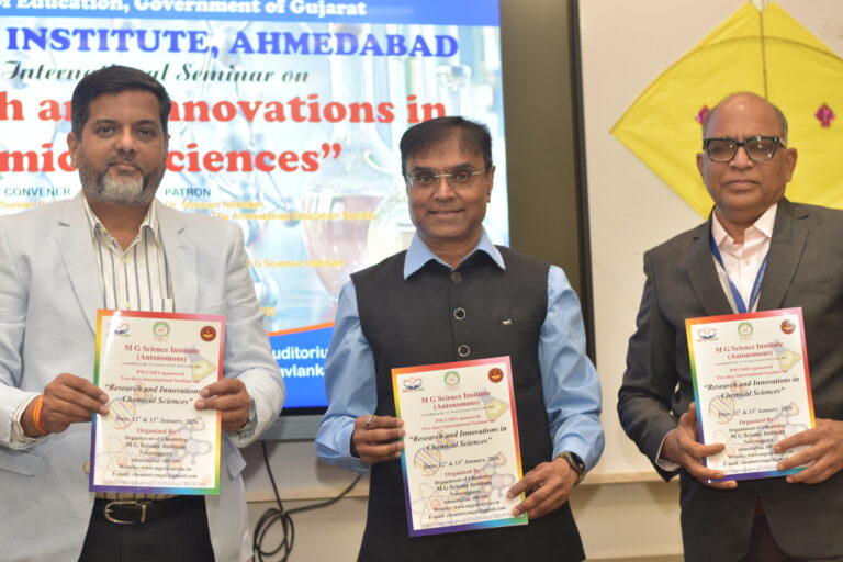 The Department of Chemistry, M. G. Science Institute organized a P. M. Usha–sponsored International Seminar on “Research and Innovations in Chemical Sciences” on 12th and 13th January 2025. The objective of the seminar was to address contemporary global challenges by integrating fundamental principles of chemistry with interdisciplinary approaches. The seminar aimed to foster scientific inquiry, innovation, and analytical thinking among researchers and students.